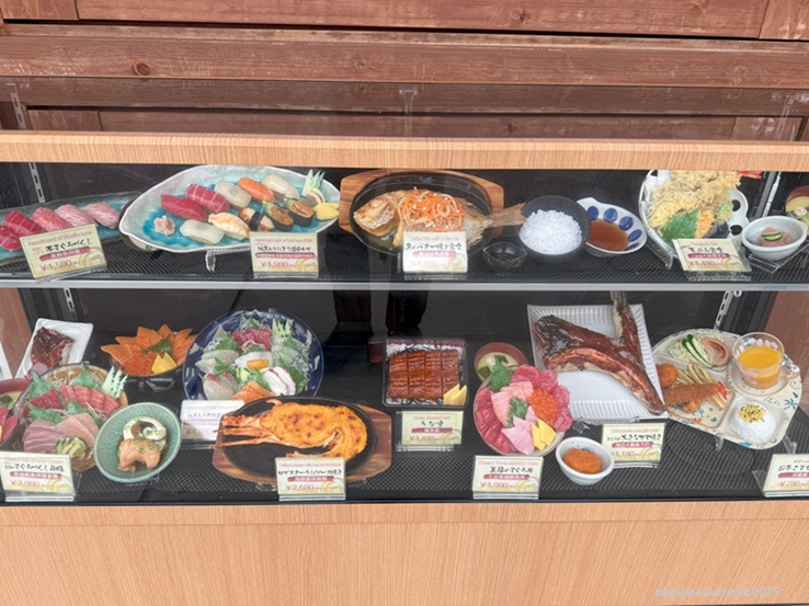 ●沖縄県糸満市西崎町4-19-1 糸満市物産センター遊・食・来 まぐろ屋みーかがん 道の駅いとまん店 ●道の駅いとまん店の敷地内 ●魚のバター焼き定食はボリュームがあり美味しい